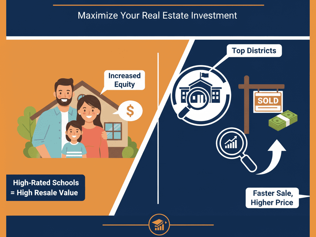 - Resale advantage: Homes in excellent school zones typically sell faster and at higher prices. Even buyers without kids recognize that a strong district makes a property easier to resell later.